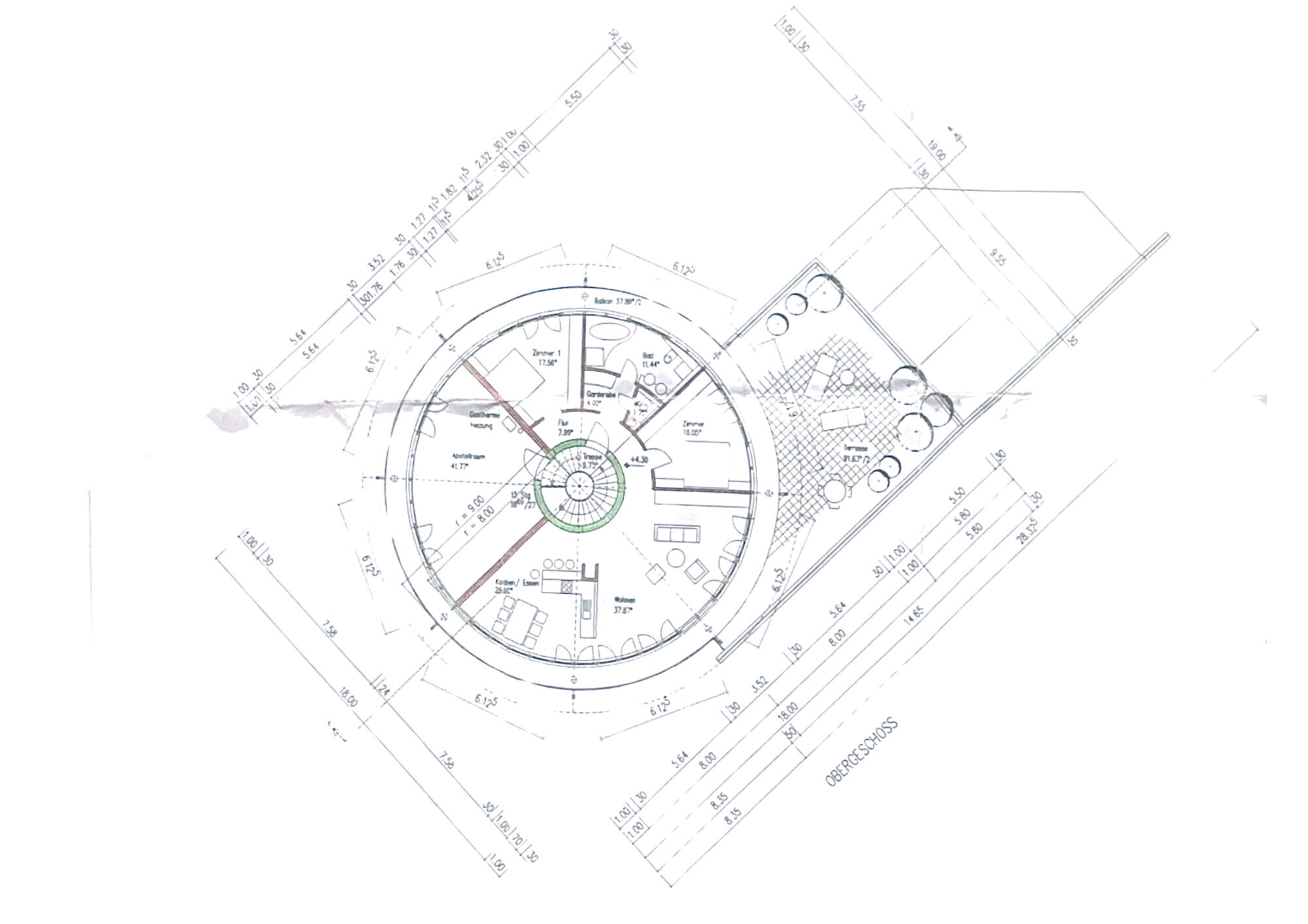Erdgeschoss massiv gebaut, Obergeschoss Holzständerbauweise. Gebäude ist ohne Unterkellerung